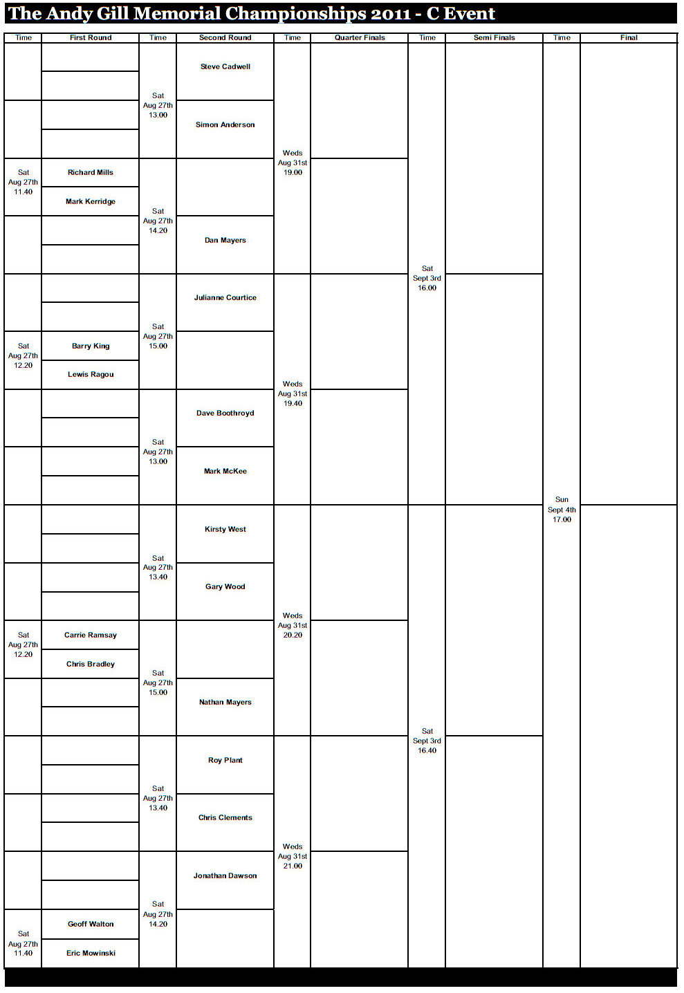 Contact: Tournament Director - Rob Slater 07768