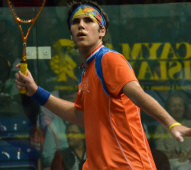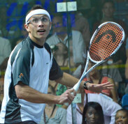 display of attacking squash, slicing cross-court nicks at