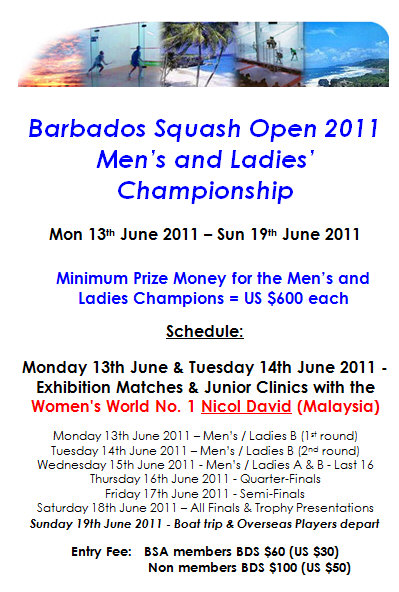being played at Barbados Squash Club, Marine Gardens,