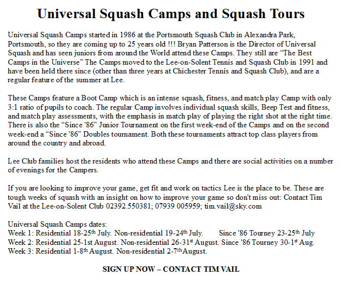 Other Sites we do: British Open Squash National Squash Champs Squash Photos