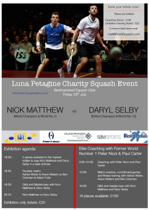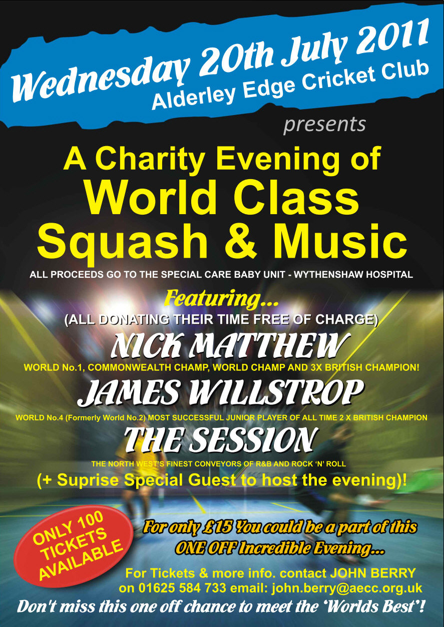 fund raising squash exhibition evening at Alderley Edge