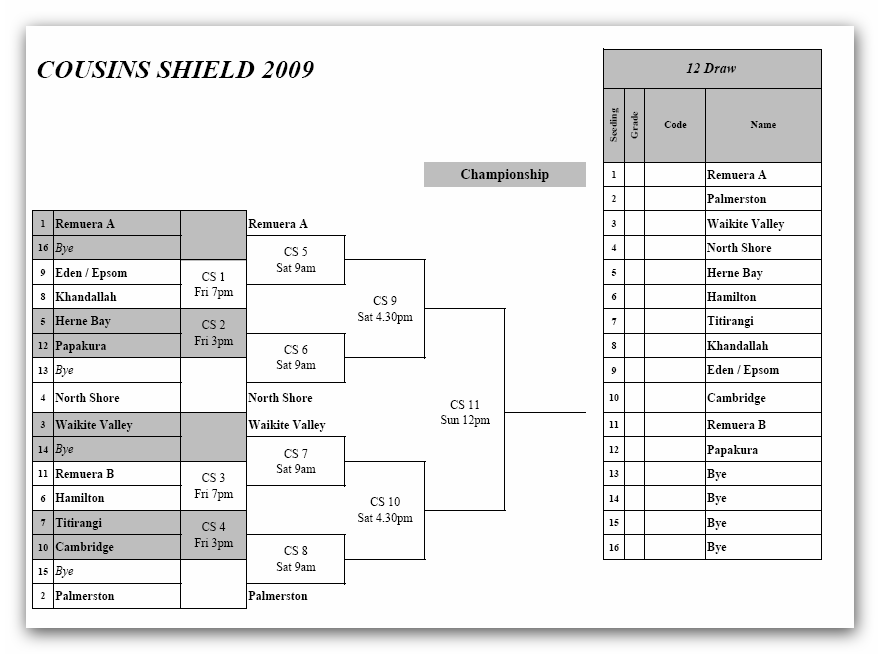 while the men's Cousins Shield is up from 11 to 12.