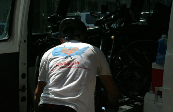 with 5 other riders, two of whom are CitySquash kids, he's