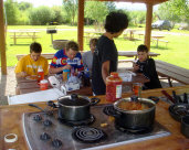 Felipe and Angel were given help with the cooking chore,