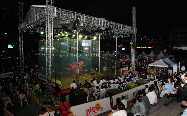 squash in Seoul and we hope that the all-glass court and television