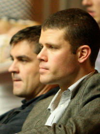 mandatory black sweater and slacks and into his squash gear: