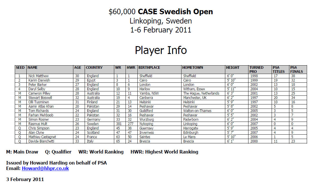 Farhan Mehboob from Pakistan entered the Swedish Open in a