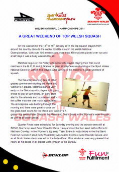 the weekend of the 14th to 16th January 2011 the top squash