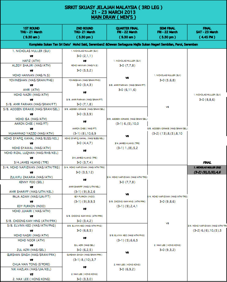 Nicolas Mueller (Sui) bt Nafiizwan Adnan (Mas) 9/11, 11/3, 6/11,