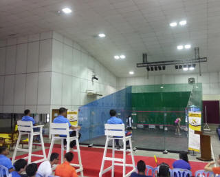 The semifinals and finals were played in glass court which