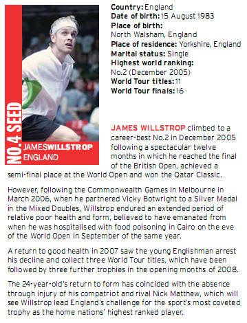 Willstrop, the runner-up in 2005, is seeded to reach the
