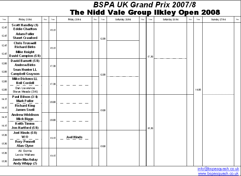 Chris Tasker-Grindley bt Mark Fuller 11/5, 11/8,