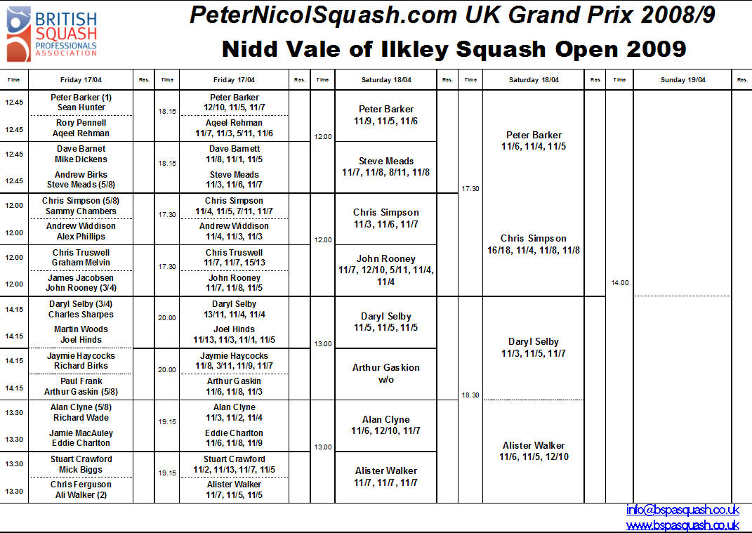 the Nidd Vale Ilkley Squash Open which runs from Friday, April 17,