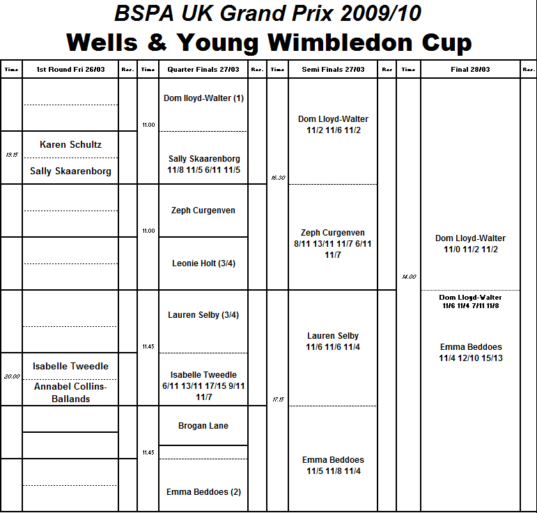 Wimbledon Cup 2010 25-28 March Men & Women |