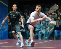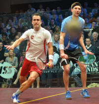 chasing down a shot from Nick Matthew as the world