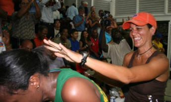 Karen Meakins of Barbados and Karen Anderson of