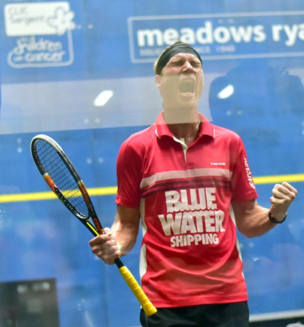 At 6/6, it’s anybody’s, and that’s when Jens plays his best squash really, all the shots came off, Joe just couldn’t stop the run of points, and it’s the German that scores 7 points from 5/6 all the way to 11/6.