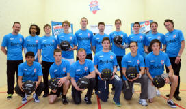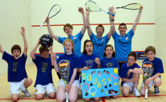 enjoyed by all, they gathered on the club's new glassback court