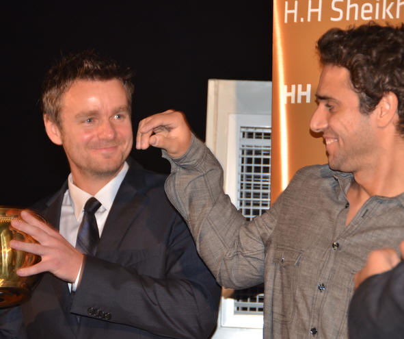 with his hands around his opponent's throat, while Darwish