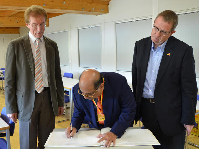 Gifts were exchanged and Mr Ramachandran signed the centre's