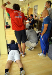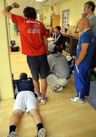 trains with his coach, and comes regularly to train with us and