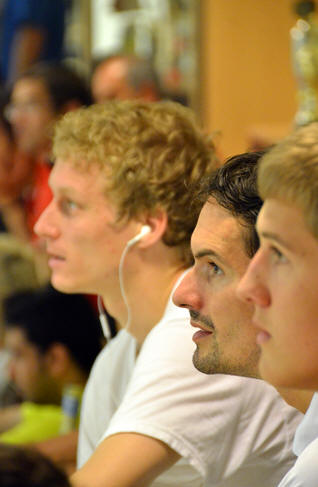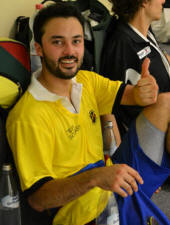glass, supporting his team mates.