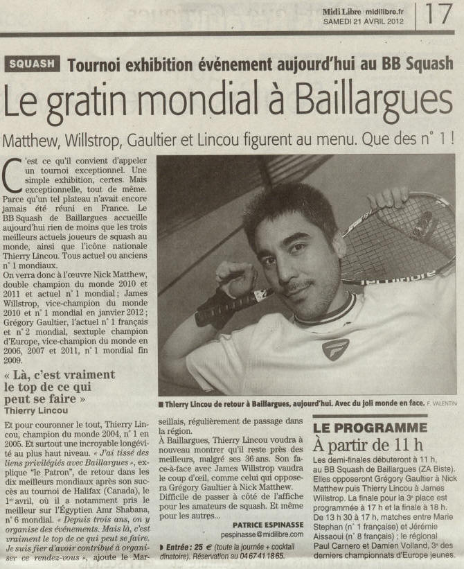 tiens à remercier le Squash de Baillargues, Jean-Gui, Philou, et