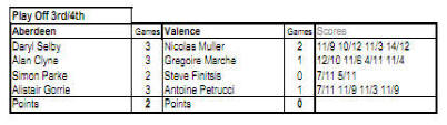ouverture, et il s'incline en 3 jeux 12-10 11-7 11-7.