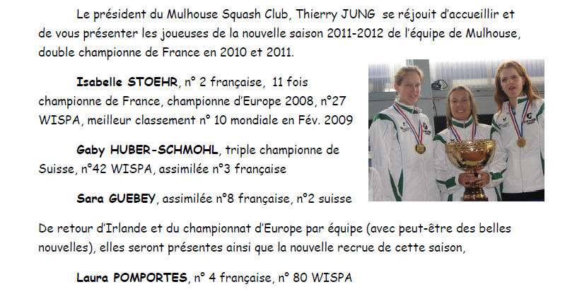 Merci à l'Espace Squash club de Mulhouse, aux partenaires,