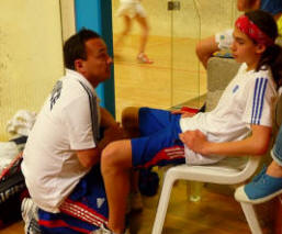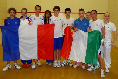 U15 Quart de finale France 2-1 Irlande Adrien Grondin perd David Ryan 11/2 11/3 11/3 Mathias Grondin bat Phillip Mc Sweeney 11/9 11/5 11/5 Marion Andriamifidy contre Fiona Power 3/0