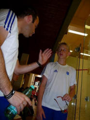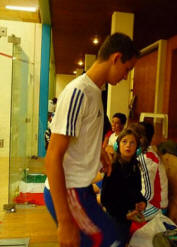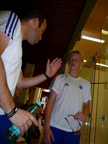 Ce matin on a perdu contre le Portugal et ce soir on a joue les Suisses. Baptiste démarre bien la rencontre , il mène même 2/1 face à Robin Gadola. Mais il finit par s'incliner 3/2 11/8 au fifth il était fatigue de son match du matin mais il a quand même fait un très bon match.