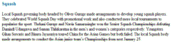 | | JUNIORS  - Asian Junior Squash to promote tourism, the President of the Sri Lanka Squash Federation, Oliver Guruge said....