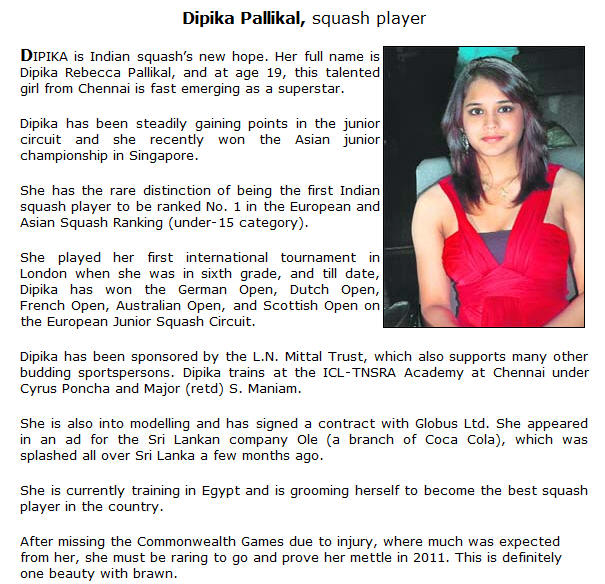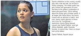 Dipika Pallikal in the limelight again... After a great match against Raneem that she only lost 14/12 in the 5th in NY a few days ago, she's been voted one of the 50 most beautiful women in India...
