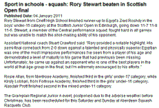 Read more.... - INVERNESS second seed Greg Lobban missed out on the chance to become the first home winner since Inverurie’s Peter Nicol 19 years ago when he lost a thrilling final of the under-19 event at the Scottish junior open squash championships at Heriot-Watt University in Edinburgh on Saturday.