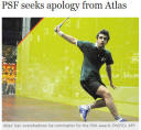 KARACHI - PSF seeks apology from Atlas: The Pakistan Squash Federation (PSF) has sought an unconditional apology from Aamir Atlas in order to lift the ban on the country’s top player.... Read more...