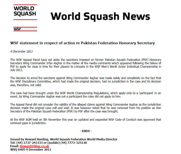 Pakistan Squash Federation’s