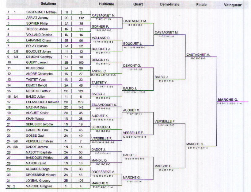 finale en battant Julien BALBO 11/5, 11/4, 11/5… Quant à