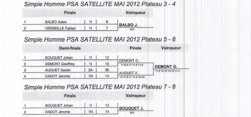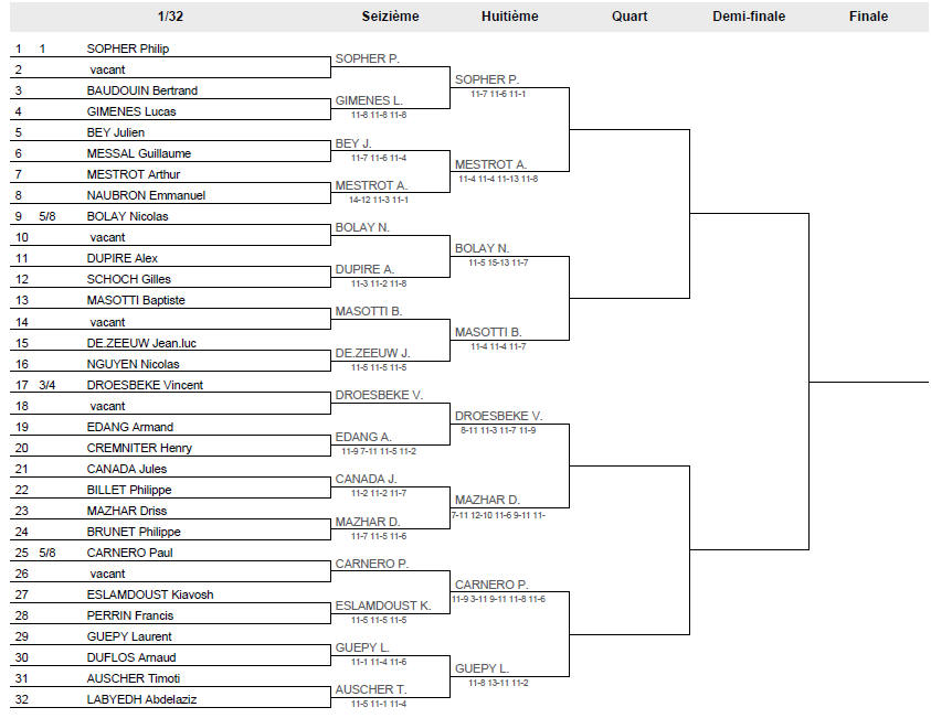 J. BOUQUET bat D. VOLLAND 3/1. J. BALBO bat Y.