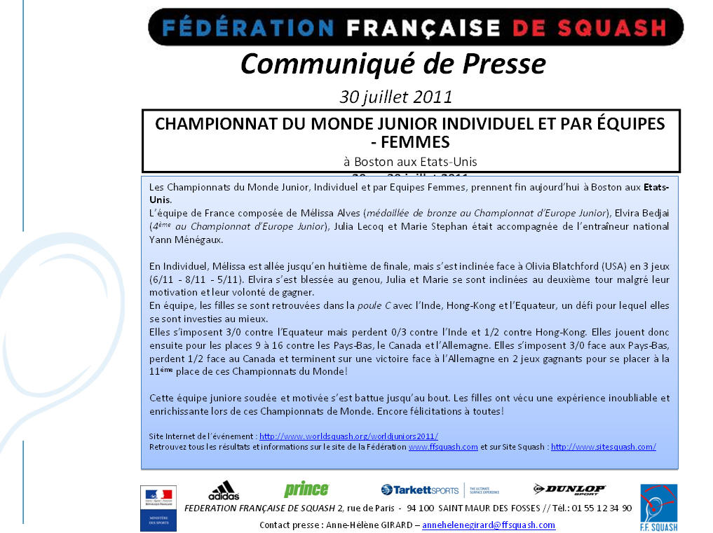 Julia Le Coq perd Karki 11/7, 5/11, 4/11, 11/9, 7/11
