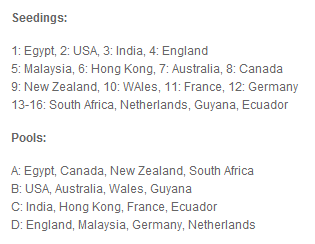 [9] New Zealand 3-0 South Africa (3-1, 3-0, 3-0) Poule B: [2] USA 3-0 [10] Wales (3-0, 3-0,