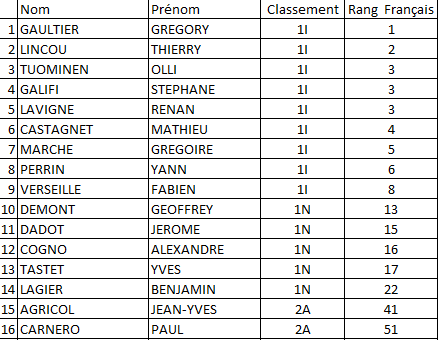 Greg Gaultier bat Nicolas Sollazzo 3/0 Yann Perrin bat Fabien Verseille 3/1 Stéphane Galifi bat Yves Tastet 3/0 Renan Lavigne bat Alexandre Cogno 3/0