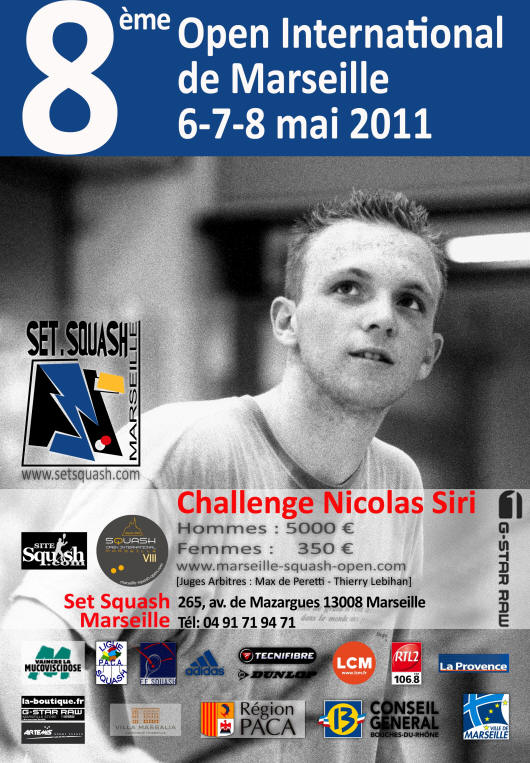 8ème CHALLENGE NICOLAS SIRI NATIONAL HOMMES RÉGIONAL FEMMES du 6 au 8 Mai 2011 - Set Squash Marseille |