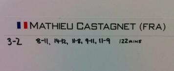 Mathieu Castagnet bat Ryan Cuskelly (AUS) 8-11, 14-12, 11-8, 9-11, 11-9 (122mn) Yann Perrin bat Zac Alexander (AUS) 13-11, 9-11, 8-11, 11-6, 11-7 (92mn) Stéphane Galifi (ITA) bt Siddharth Suchde (IND) 11-7, 11-6, 6-11, 11-8 (65mn) |