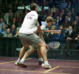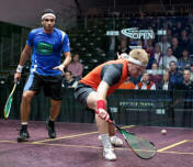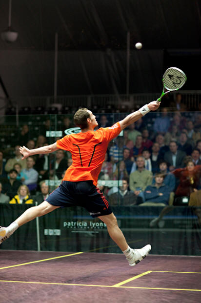 Photos Patricia Lyons | [3] James Willstrop (Eng) bat [Q] Yann Perrin 2/10, 11/6 11/8 (37mn) |