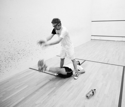 have a squash session once a day. I usually go on court for