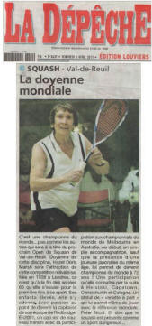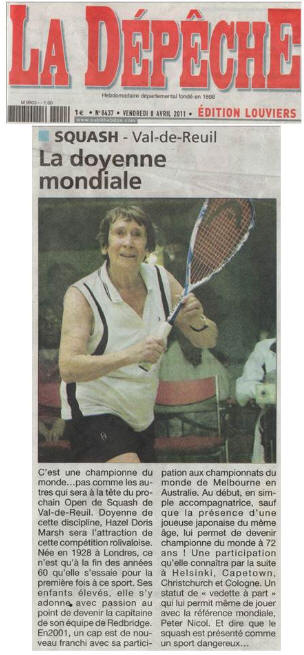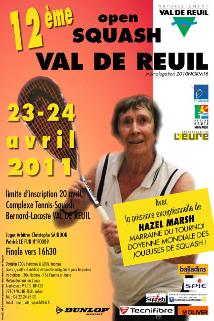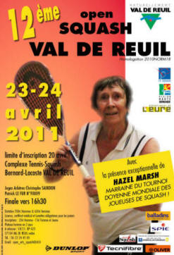 Et bien voilà, depuis ce matin aux aurores ... (premiers matchs à 8h15 !) ...débutait l'open de Val de Reuil, 12è en date avec cette année la présence exceptionnelle de Hazel Marsh, marraine du tournoi, doyenne mondiale des joueuses de squash.