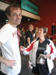 La journée s’acheva par la remise des récompenses à l’occasion de laquelle Patrick Le Fur remis à Hazel Marsh une raquette « Grays » neuve (… en bois.. avec les « petits tamis d’antan » !), celle là même avec laquelle Hazel avait tapé il y a …un certain nombre d’années la balle avec Patrick.