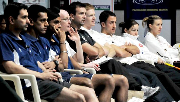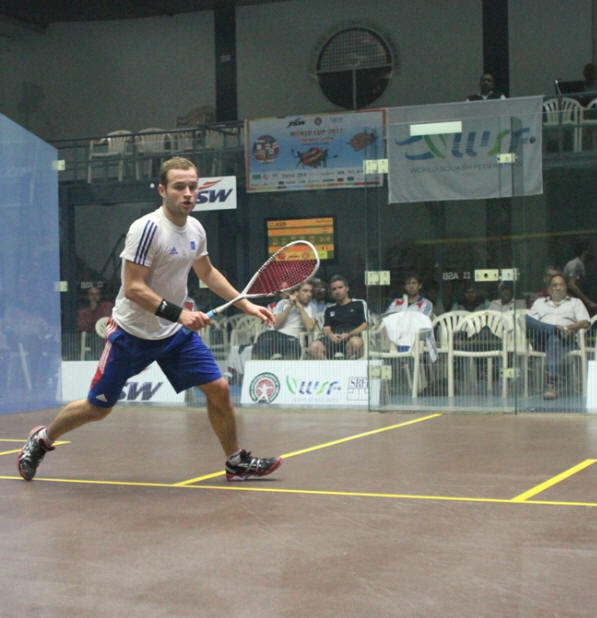 Pool B: [2] ENGLAND bt [6] INDIA 3/0 James Willstrop bt Saurav Ghosal 12-14, 11-3, 11-5, 10-12, 12-10 (61m) Jenny Duncalf bt Joshna Chinappa 11-7, 11-7, 11-9 (21m) Peter Barker bt Harinder Pal Sandhu 6-11, 11-6, 11-7, 12-10 (48m)