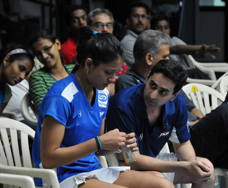 Par contre, l'Inde, même si elle s'incline 3/0 contre l'Angleterre, leur a donné quelques sueurs froides - 12/10 pour James au 5ème contre son camarade d'entraînement Saurav Ghosal, et Harinder Pal Sandhu menant 1/0 contre Peter Barker pour ne perdre que 12/10 au 4ème, pas franchement une tite promenade de santé....