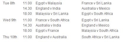 Poule B: [2] Angleterre, [3] Australia, [6] Inde, [7] Mexique |